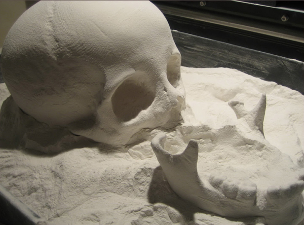 A 3D printerrel nyomtatott műanyag koponyamásolat |