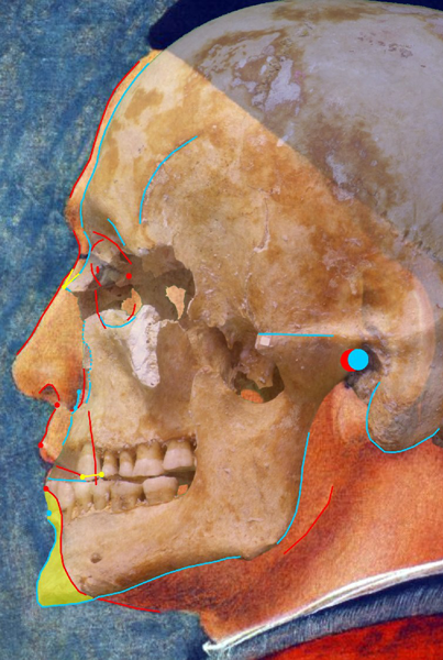Az arcrekonstrukció és a feltételezett portré szuperimpozíciója |