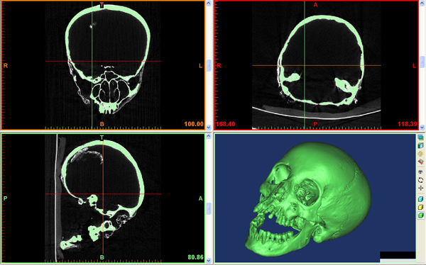 A koponya CT alapján készült 3D rekonstrukció |